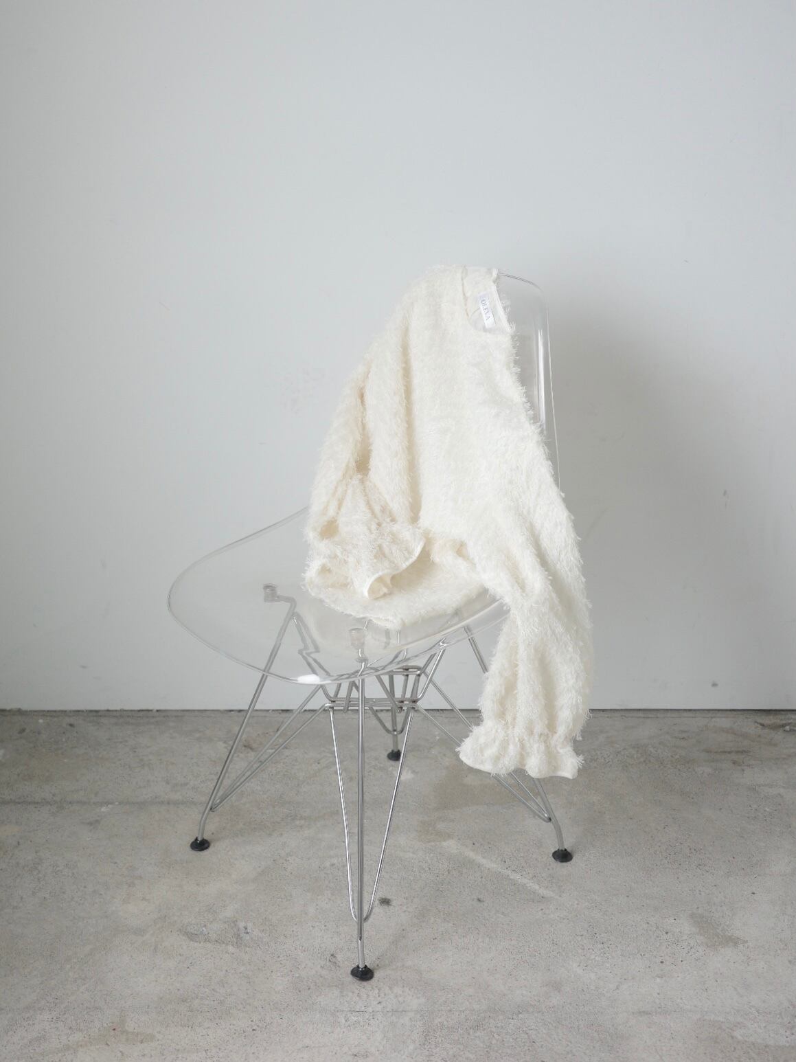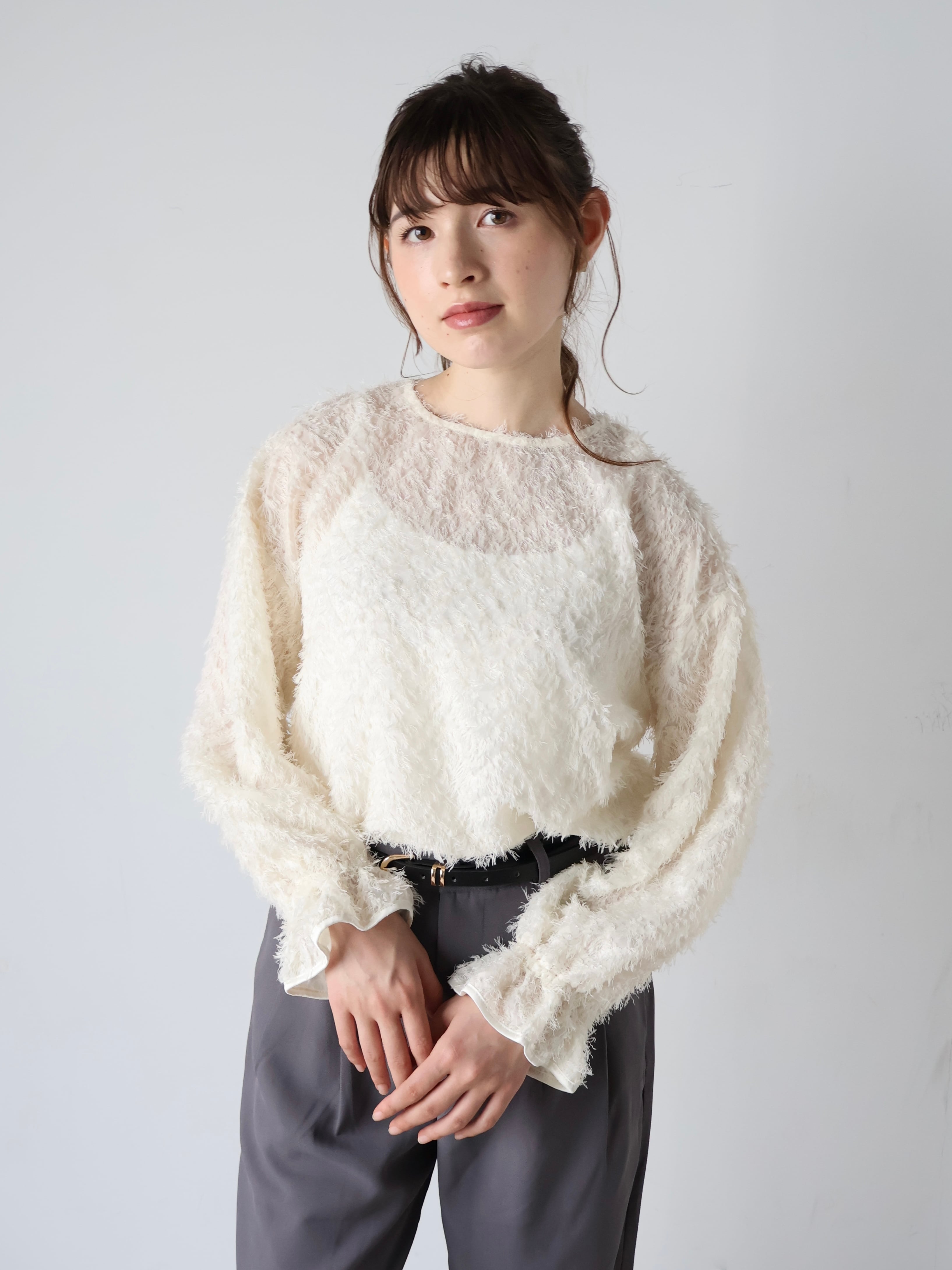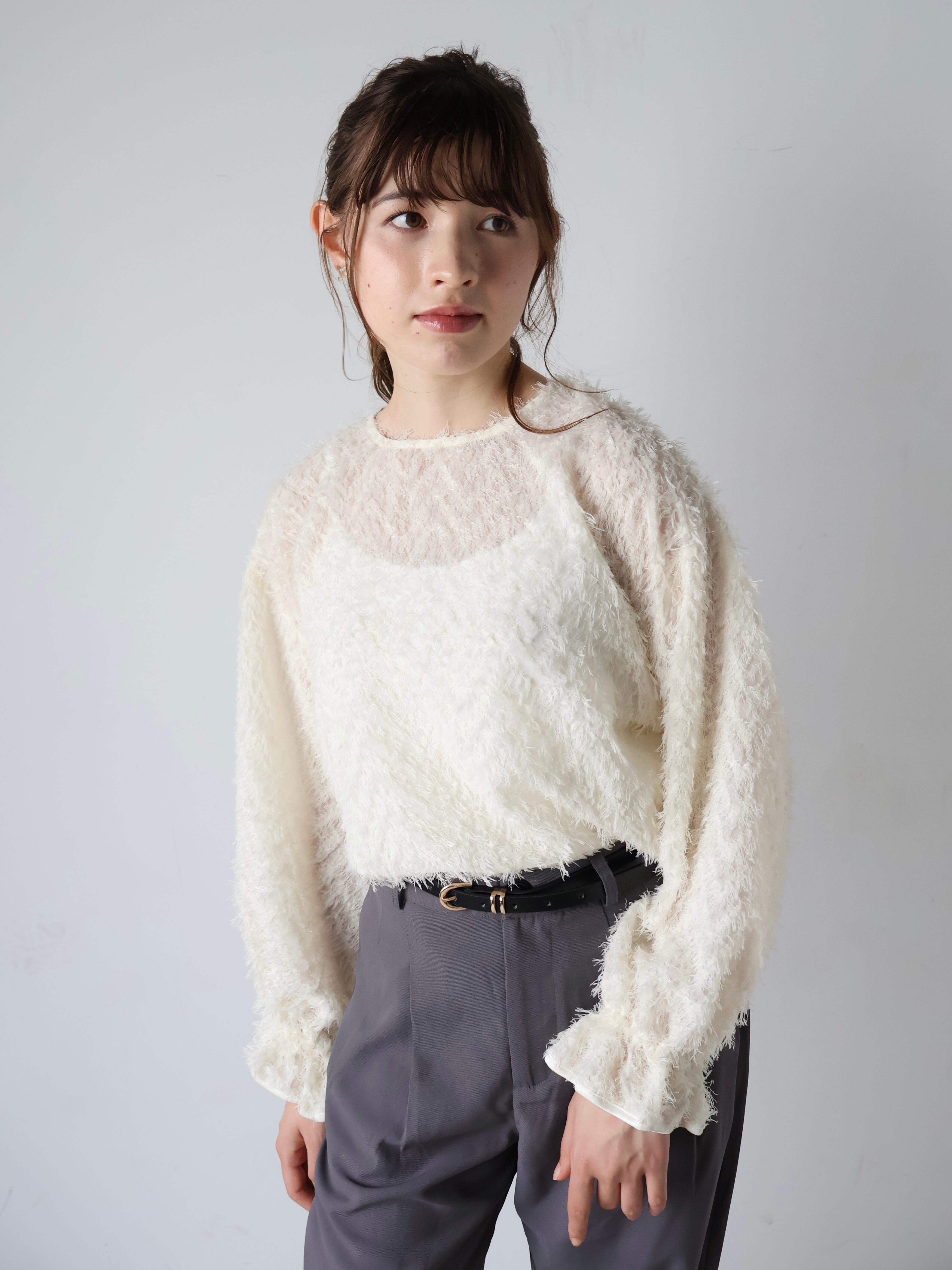 fringe jacquard candy sleeve blouse〔white〕